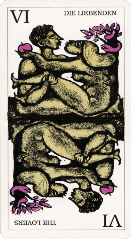 Die kraftvollen Zeichnungen Sieghard Dittners, zwischen spritziger Lebenslust und düsterer Unerbittlichkeit schwankend, schaffen eine Neubelebung der Tarockbilder, deren Reihe optimistisch schließt mit Tarock XXI = die Erde, als Garten Eden gesehen. Die Struktur des Spieles orientiert sich am Marseiller Tarock. Das Spiel ist exklusiv bei uns in einer limitierten und signierten Auflage von 500 Exemplaren zu haben.